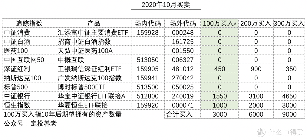 创作立场声明:仅代表个人观点,据此操作买卖,盈亏自负。2020年10月买入*100万买入,即10年后期望拥有的资产数量。100万版本买入:深证红利(481012):450元中证银行(24···